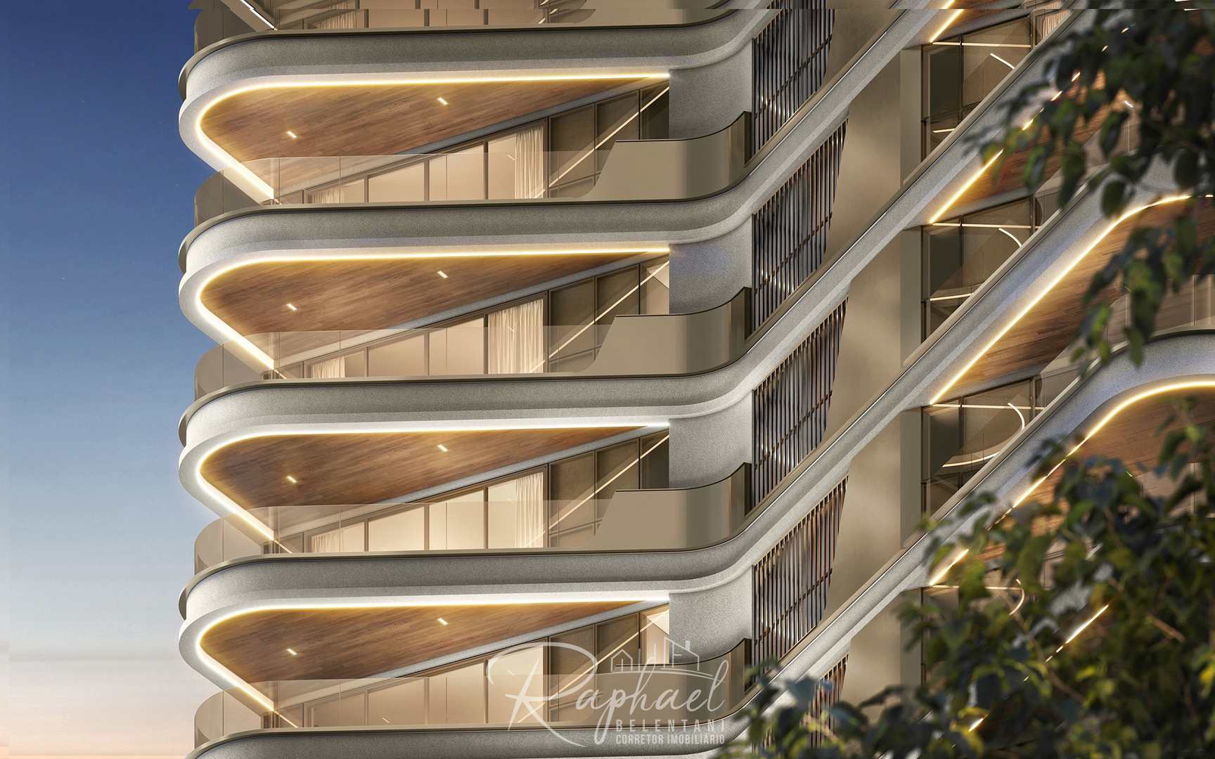O empreendimento adota soluções contemporâneas em conforto, tecnologia e sustentabilidade, integrando paisagismo, iluminação e materiais de forma coerente com a assinatura internacional do projeto.
