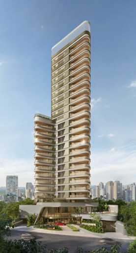 Projeto contempla plantas com 3 ou 4 suítes, varandas espaçosas, elevadores privativos, vagas de garagem múltiplas por unidade e infraestrutura para veículos elétricos.